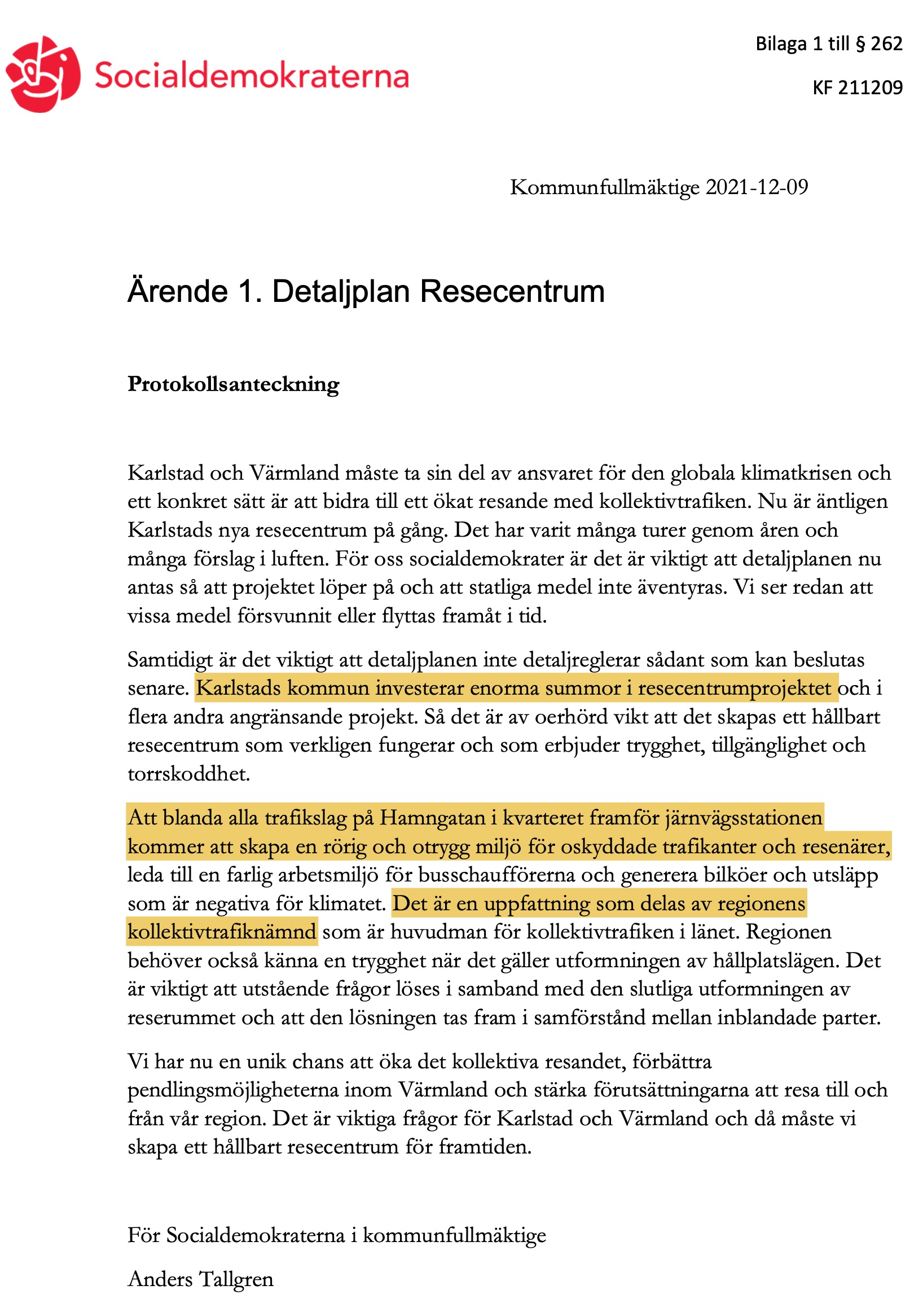 Socialdemokraten Anders Tallgren om resecentrum – vilket troligen blir en valfråga