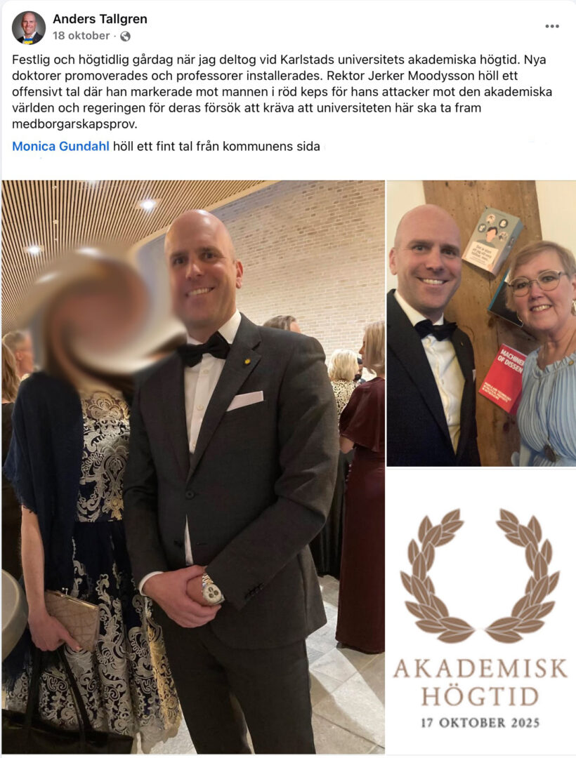 Här ses det andra socialdemokratiska kommunalrådet på Karlstads Universitetet akademiska högtid. Nu vill han fördyra och försvåra insynen i den offentliga skattefinansierade förvaltningen.