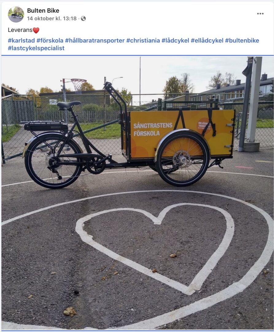 Inlägg om sålda lastcyklar till Karlstads kommun är raderade på Bulten Bikes facebooksida. De inläggen publiceras nedan som skärmdumpar.