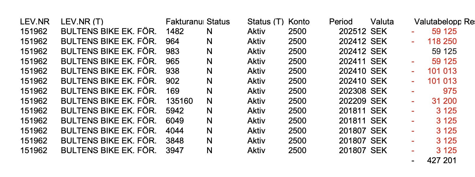 Karlstads kommun har inga ramavtal med Bulten bike, allt enligt upphandling och redovisningsenheterna i kommunen. Kommunen har avtal med Solsta cykel.