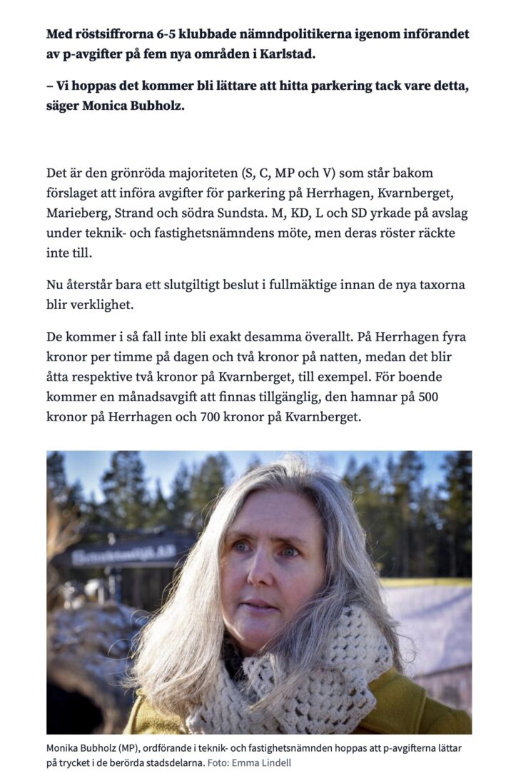 Makarna Bubholz bor inte i just de områden som de vill avgiftsbelägga, men hon har uttalat sig i parkeringsfrågan och är ordförande i teknik och fastighetsnämnden, samtidigt som maken säljer cyklar till Karlstad kommun. Nu kan det för en del medborgare helt enkelt bli för dyrt att ha bil. Då kan det sannolikt bli försäljning av lastcyklar genom Bulten bike.