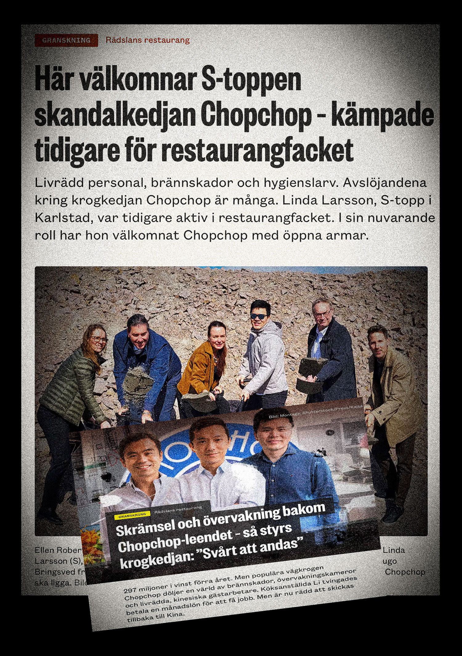 I tidningen Arbetets granskning om restaurangkedjan Chopchop frågar reportern: Hur tror du att dina gamla fackföreningsvänner känner när du hyr ut mark till Chopchop som kommunens företrädare?
