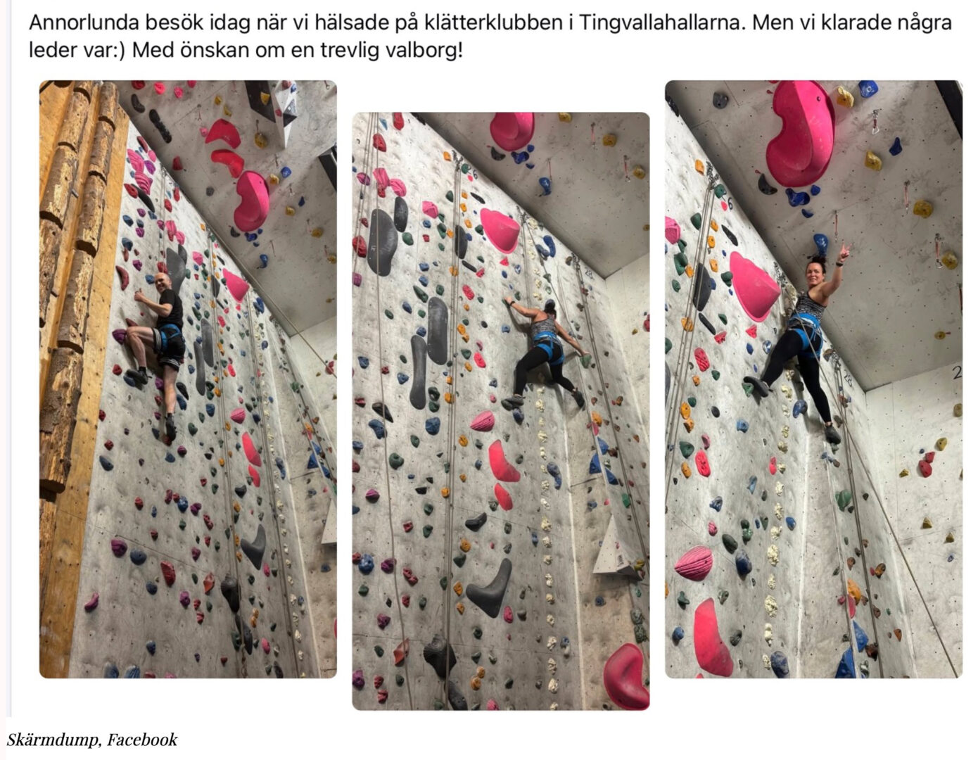 Här ses de båda socialdemokratiska kommunalråden på arbetstid ägna sig åt ett fritidsintresse, under ett besök på klätterklubben. Karlstads kommun har i dagsläget hela fem kommunalråd anställda.